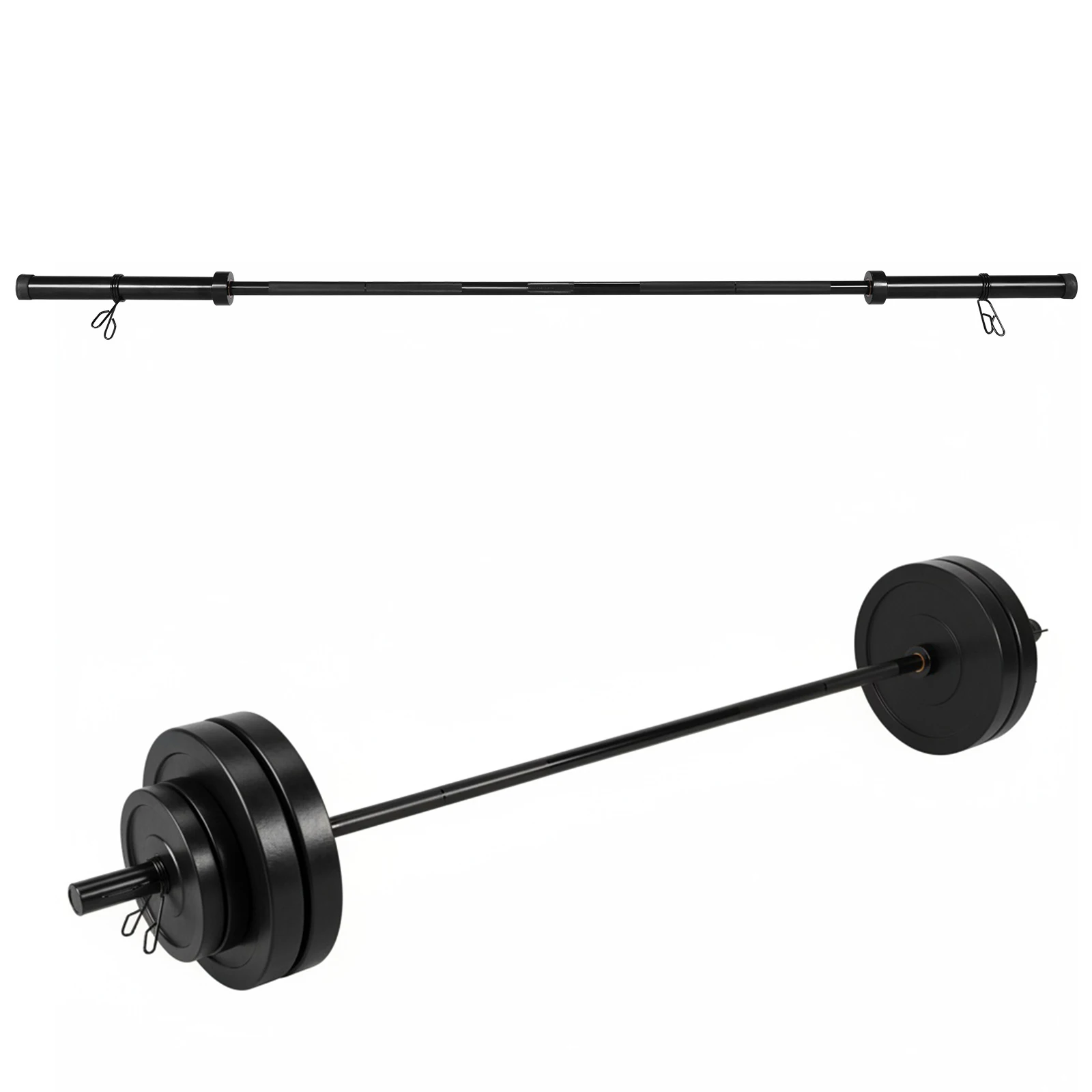3.Enduring Metal Lock Clasp: Featuring a sturdy metal buckle, the straight barbell bar keeps your weight plates tightly secured. Enjoy superior durability and safety during intense training, preventing loosening of plates while lifting.